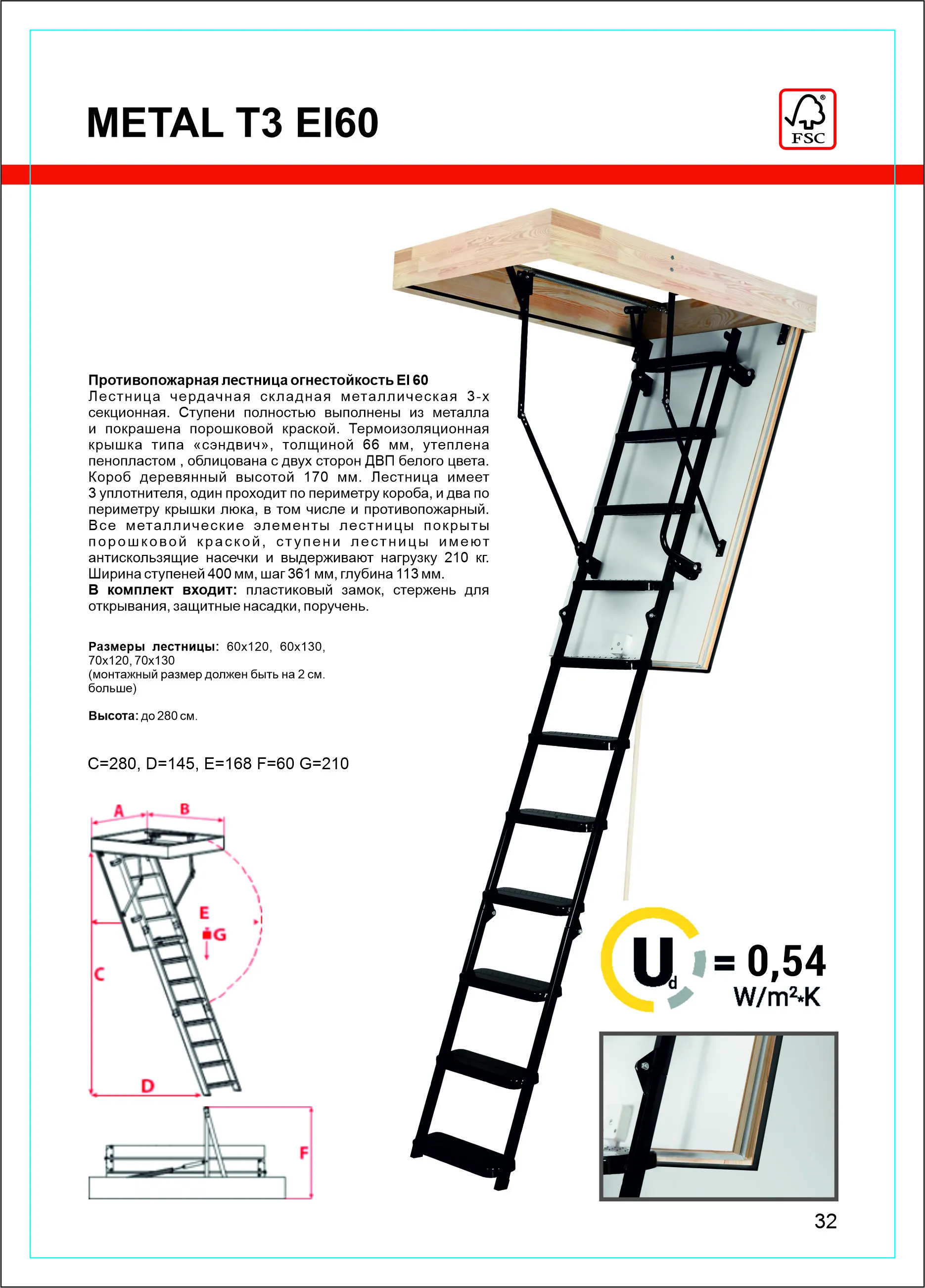 Складная 4-х секционная чердачная лестница. Ступени выполнены из сосны, имеют противоскользящие насечки, направляющие из металла.