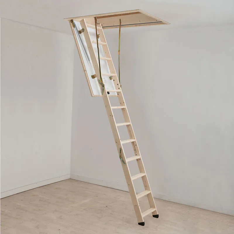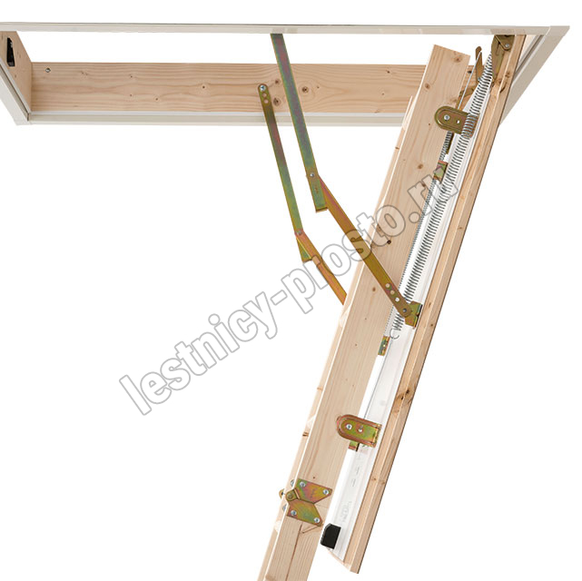 PROF 36 - трехсекционная утепленная лестница из скандинавской медленнорастущей ели, отличающейся повышенной прочностью, ступени из сосны, имеют антискользящие насечки. Лестница оснащена поворотным замком, надежно фиксирующим люк в закрытом состоянии. Высоту базовой модели можно увеличить при помощи дополнительной секции до 3500 мм. Размер короба: 1175х676 мм