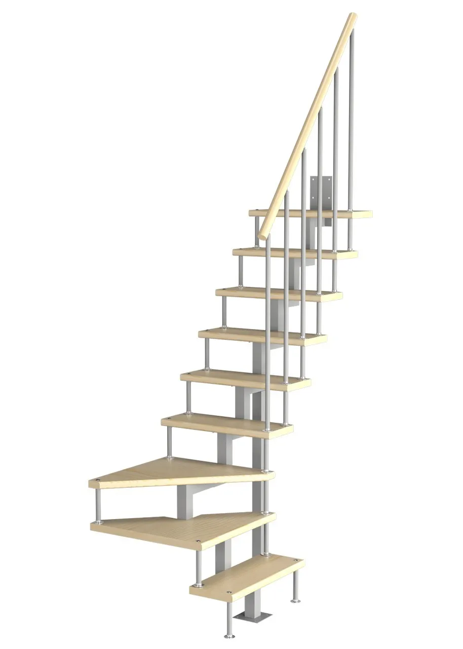Компактная лестница, легко поддается доработке по высоте на объекте. Удобный поручень по второму маршу обеспечивает безопасность и законченный эстетический вид. Монтаж осуществляется силами двух человек на объекте по указаниям, приведенным в паспорте на лестницу.