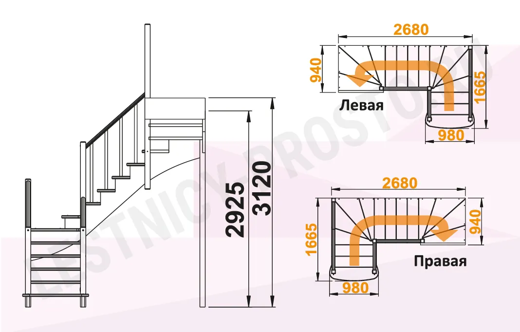 Высота лестницы 2925 - 3120