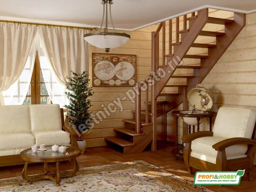 Ступени и поручень лестницы изготовлены из дуба, остальные элементы из сосны.