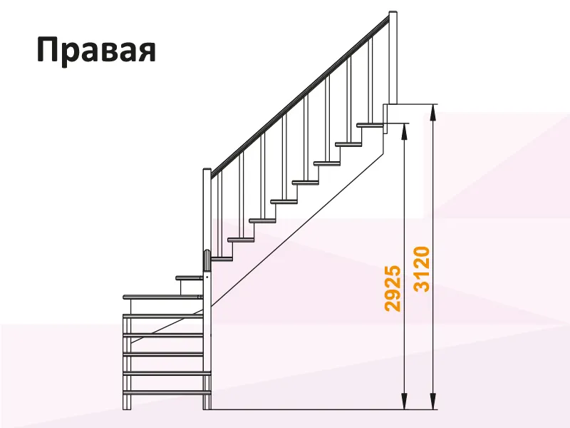 Высота лестницы 2925 - 3120 мм