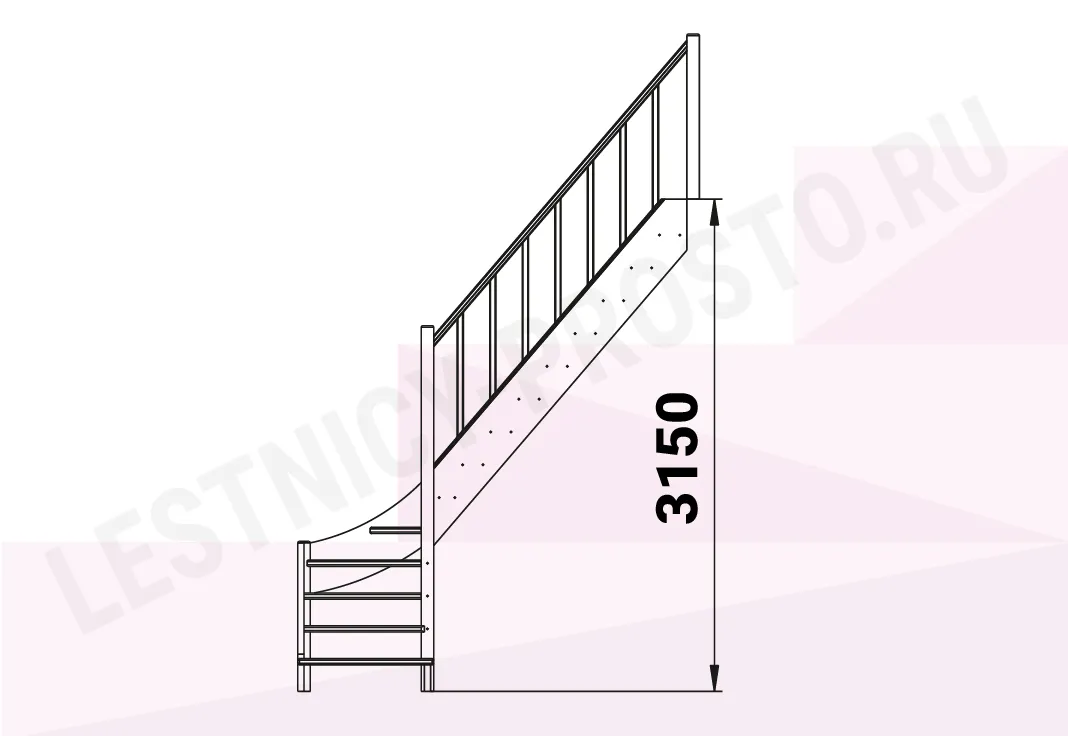 Базовый комплект включает в себя деревянные элементы лестницы и ограждения без какого-либо покрытия.