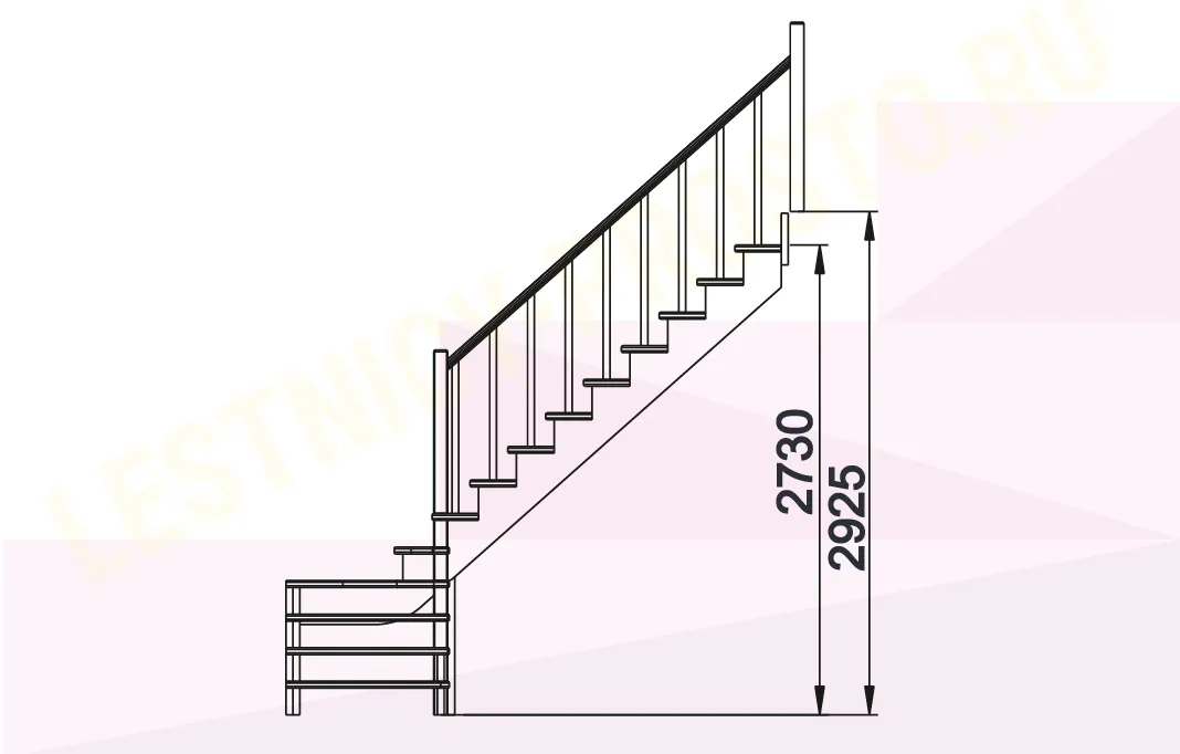 Базовый комплект включает в себя деревянные элементы лестницы и ограждения без какого-либо покрытия.