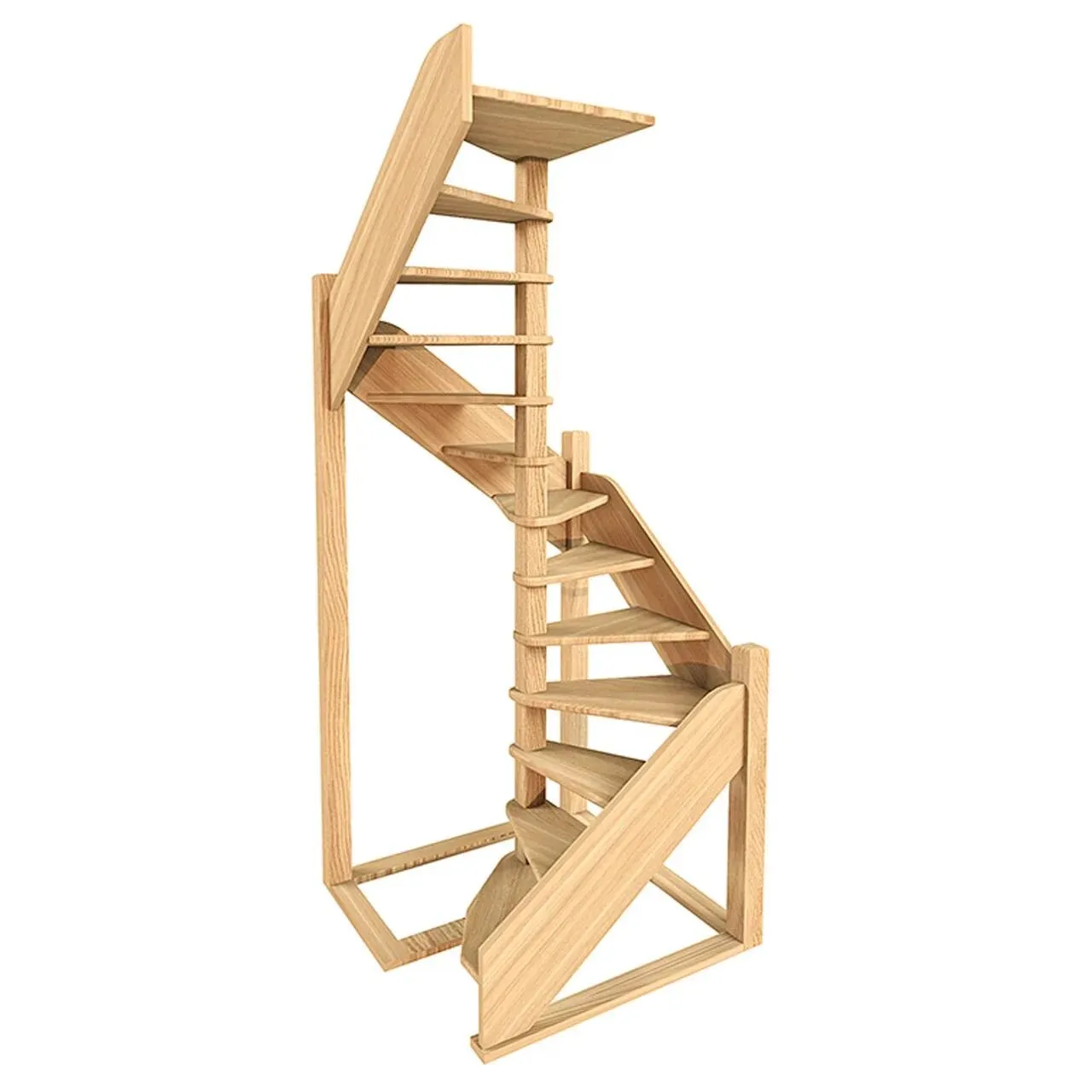 Ступени и поручень лестницы изготовлены из ясеня, остальные элементы из сосны.