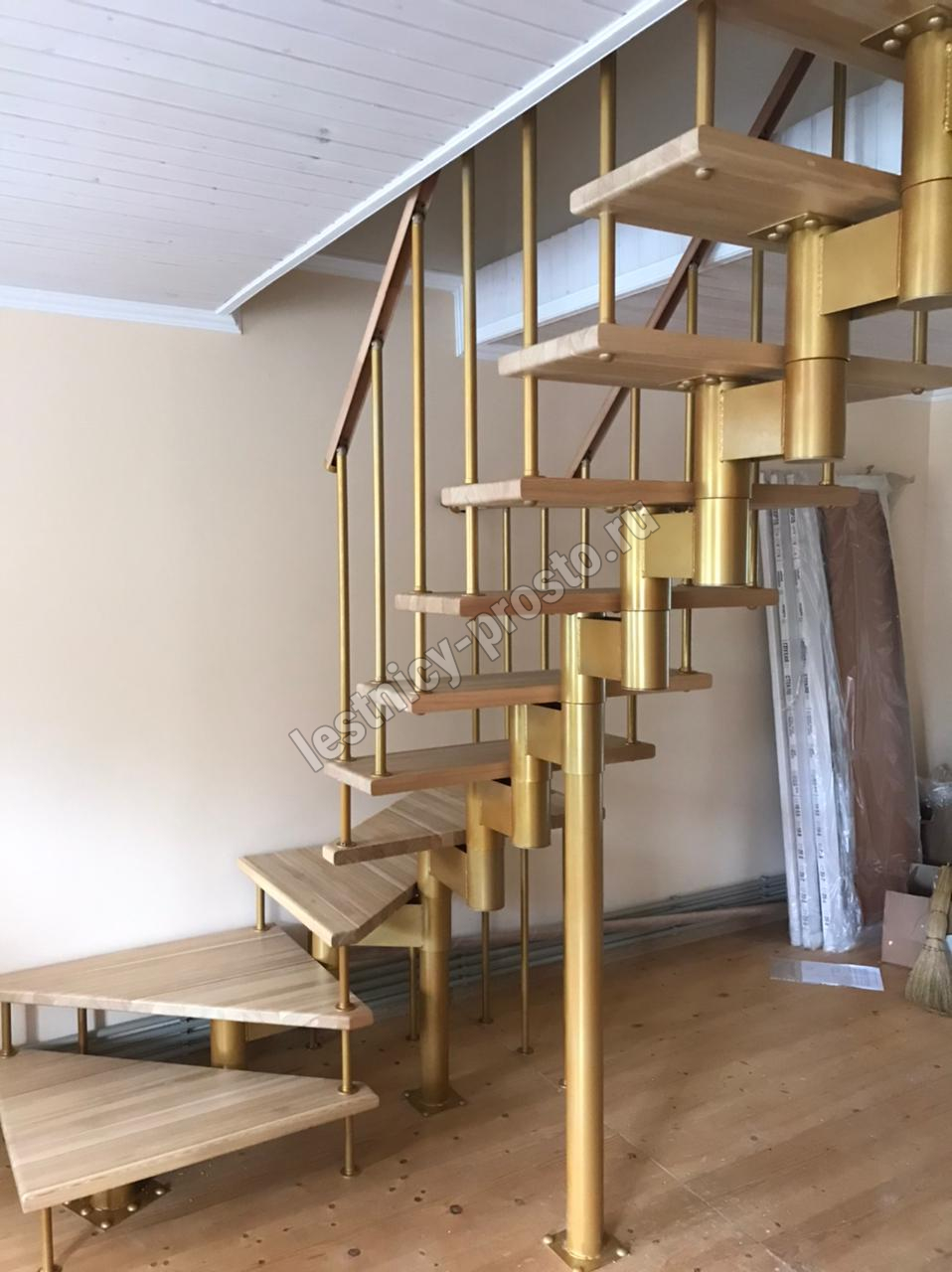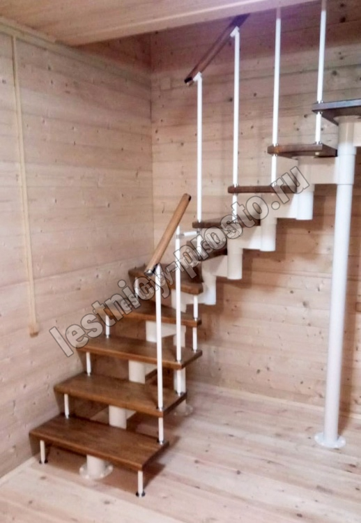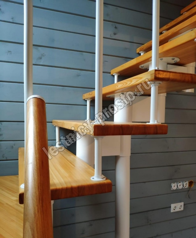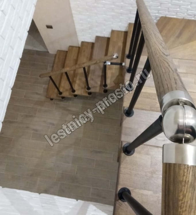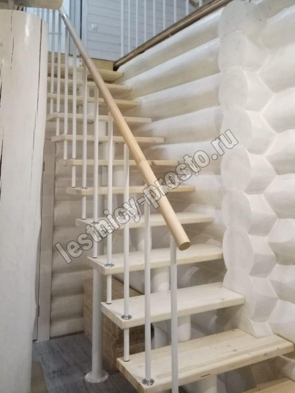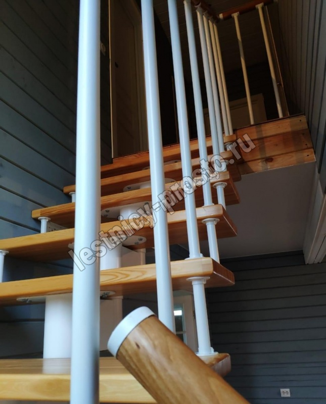 Готовый комплект ограждений с крашеными стойками собран специально для п-образной модульной лестницы PROSTO MODULE h337.5 (из 14 ступеней).