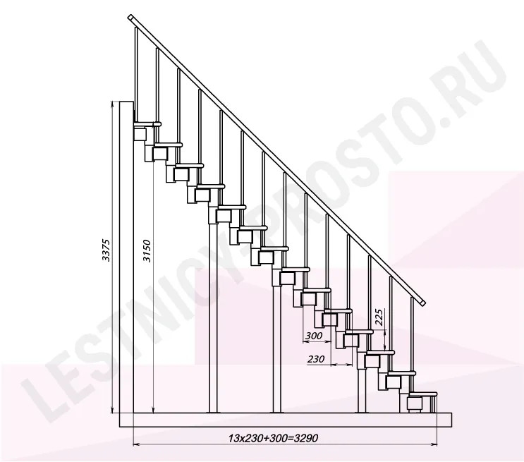 Высота лестницы 3150 - 3375 (14 ступеней) мм