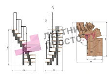 Лестница Prosto Urban Black гусиный шаг 600 мм, h180-264 см (10 ступеней), дуб