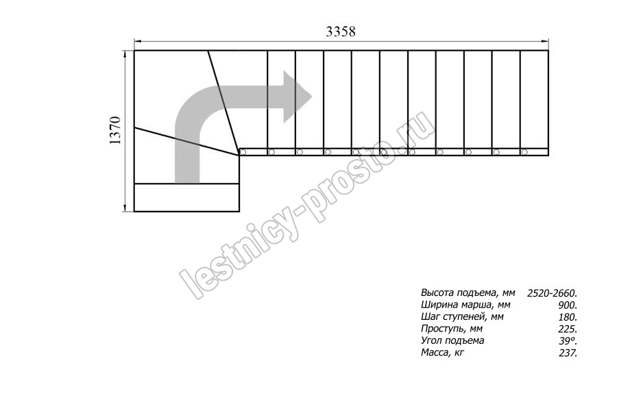 Модульная лестница Фаворит 180 2520-2660, Черный, Сосна, Нержавеющая сталь