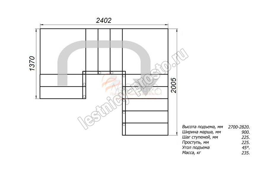 Модульная лестница Комфорт 225 2700-2820, Серый, Сосна, Крашеная