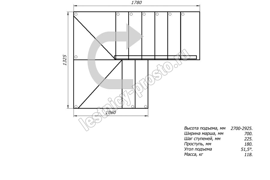 Модульная малогабаритная лестница Эксклюзив 2700-2925, Серый, Сосна, Нержавеющая сталь