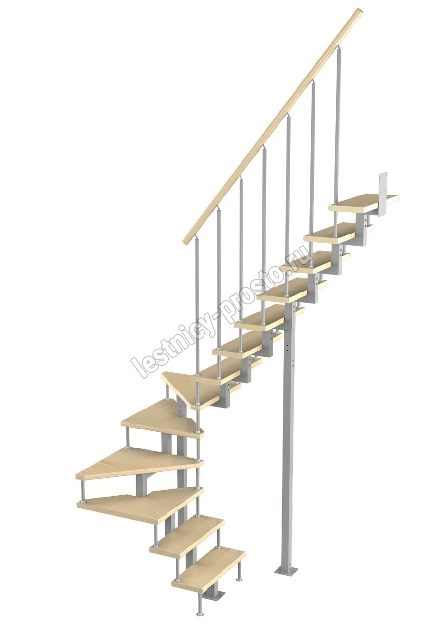 Модульная малогабаритная лестница Эксклюзив 2925-3150, Серый, Бук, Нержавеющая сталь