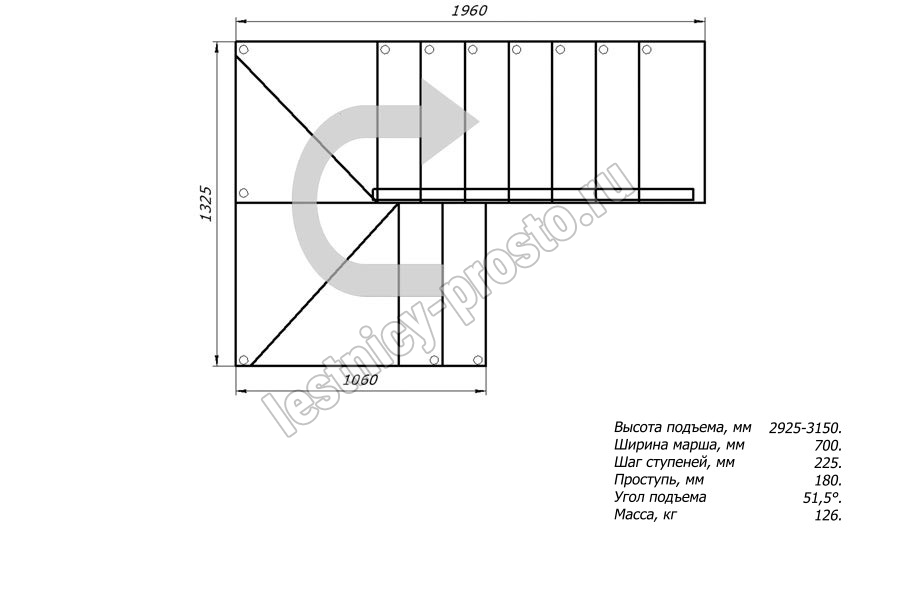 Модульная малогабаритная лестница Эксклюзив 2925-3150, Серый, Сосна, Нержавеющая сталь