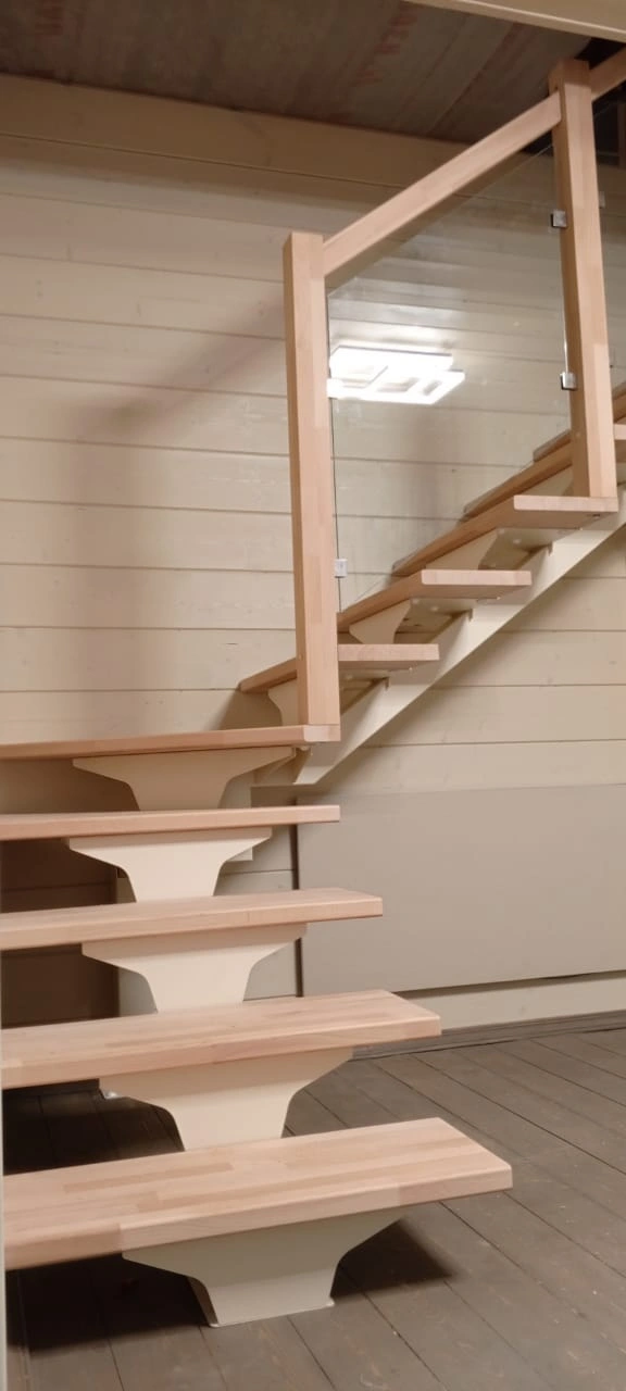 Ступени и поручень выполнены из цельноламельного ясеня категории АВ.