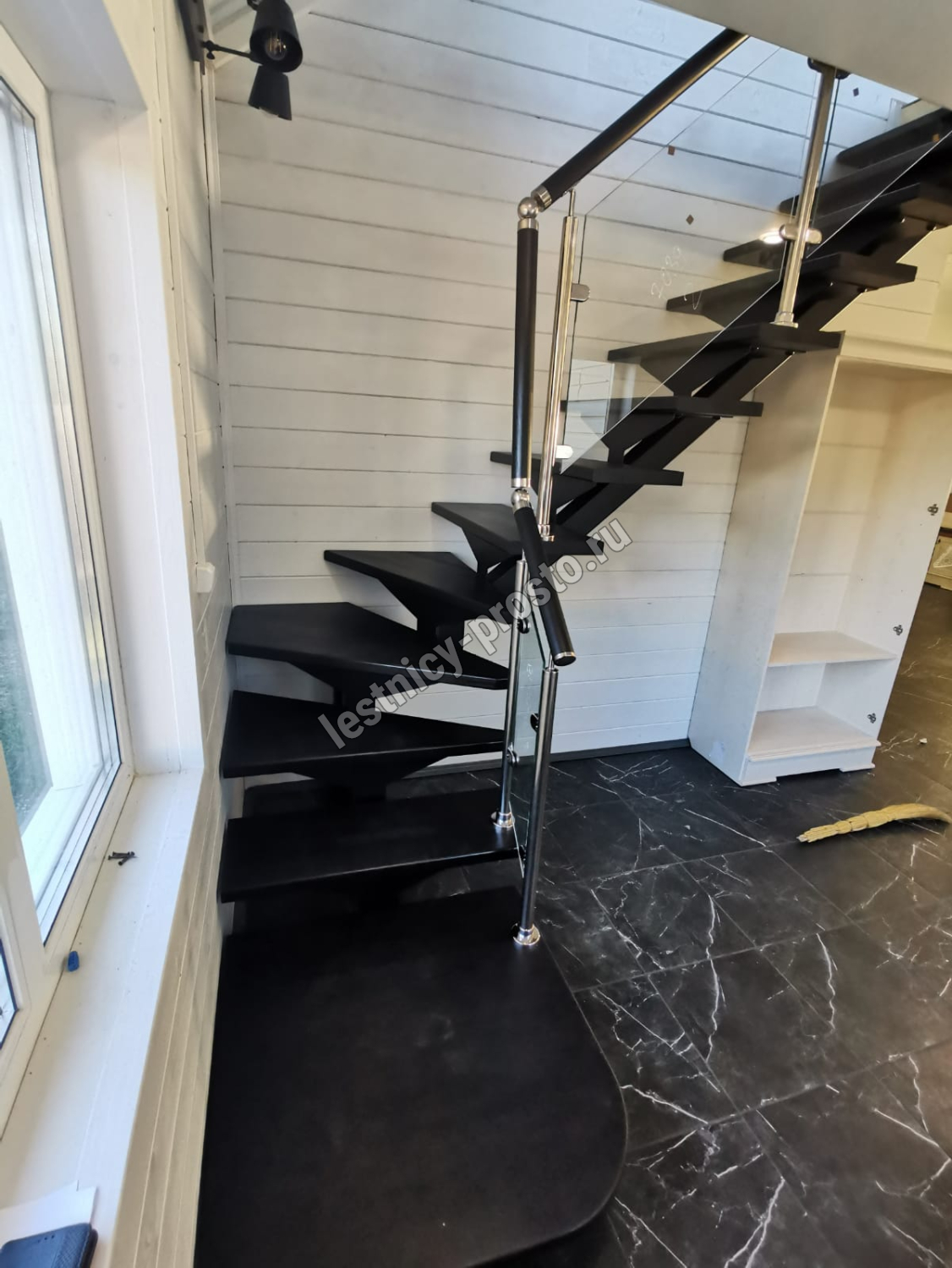 Стеклянная лестница на металлическом каркасе LP-3103