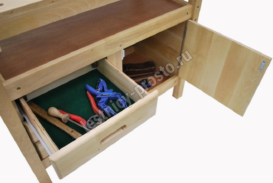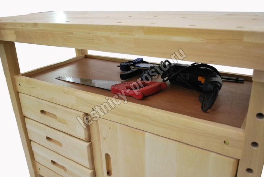 Все верстаки изготовлены из особо прочной древесины, обладают повышенной прочностью и износостойкостью, легко собираются и комплектуются удобными секциями для хранения инструментов.