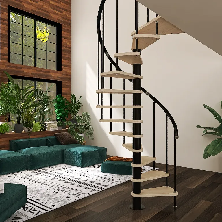 Лестницу Montreal Style можно монтировать в круглые и квадратные проемы. Ступени изготовлены из бука по технологии MULTIPLEX, покрыты износостойким защитным лаком.