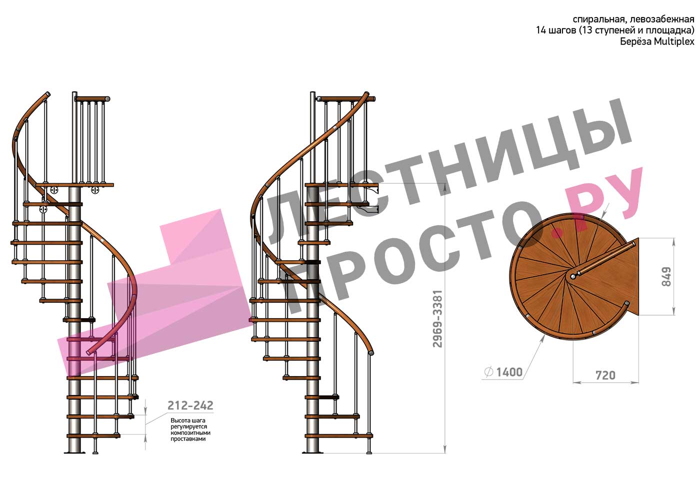 Высота лестницы 2969 - 3381 (13 ступеней) мм