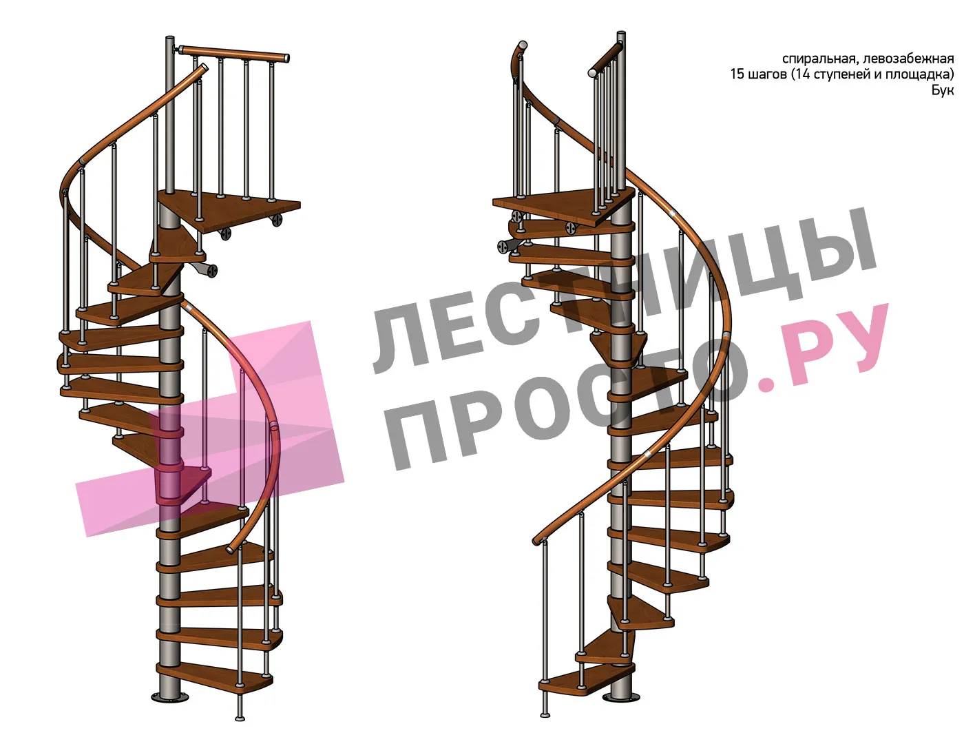 Правая, d=140см, 14 ступеней + площадка