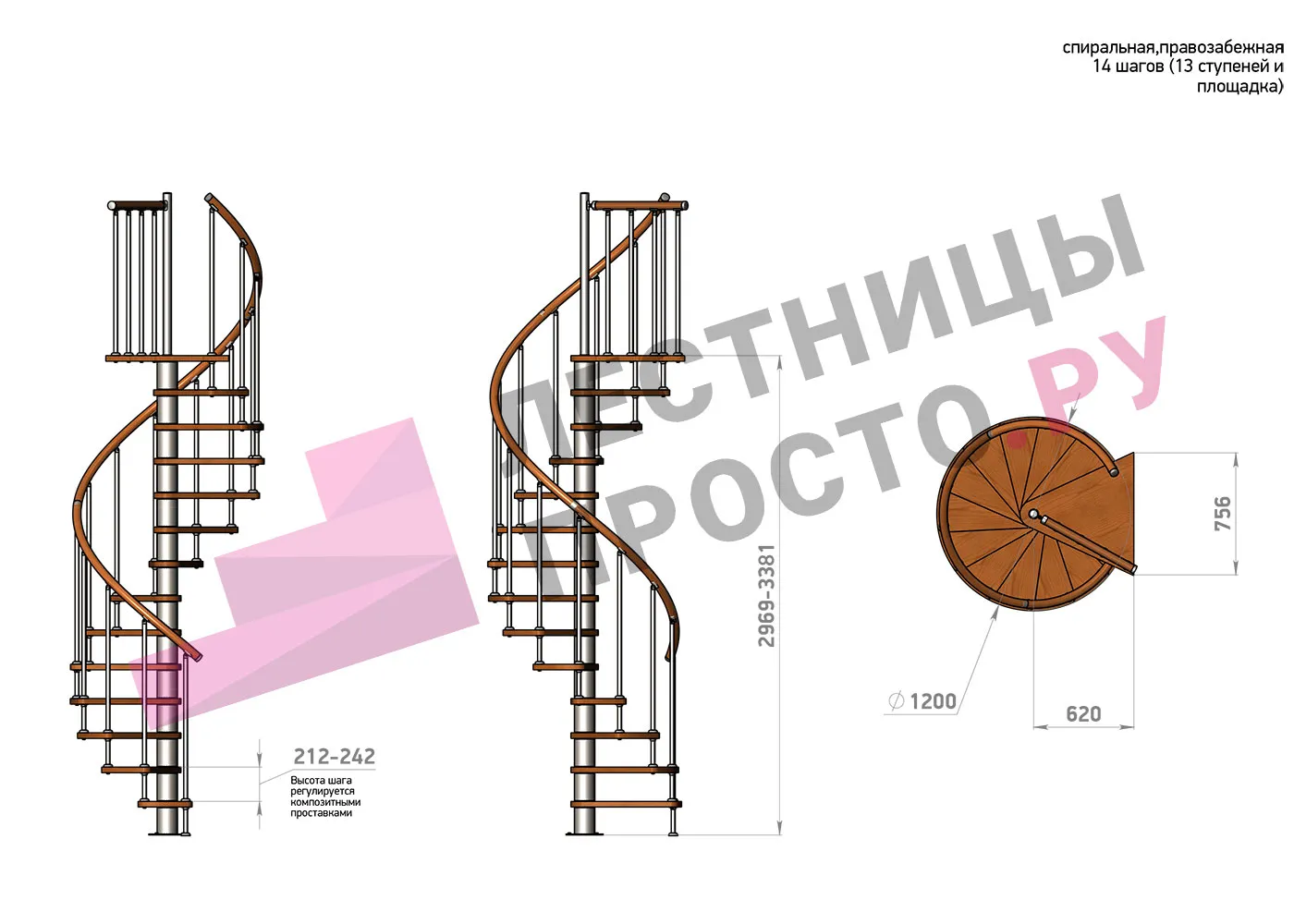 | Винтовая лестница Prosto Spiral Black D120см, h296.9-338.1 см |