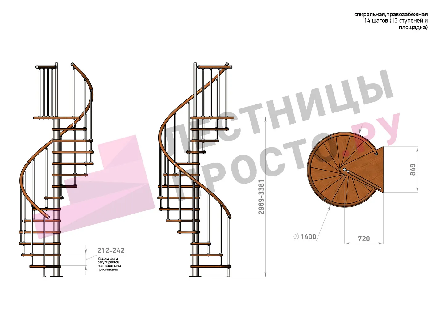 | Винтовая лестница Prosto Spiral Black D140см, h296.9-338.1 см |