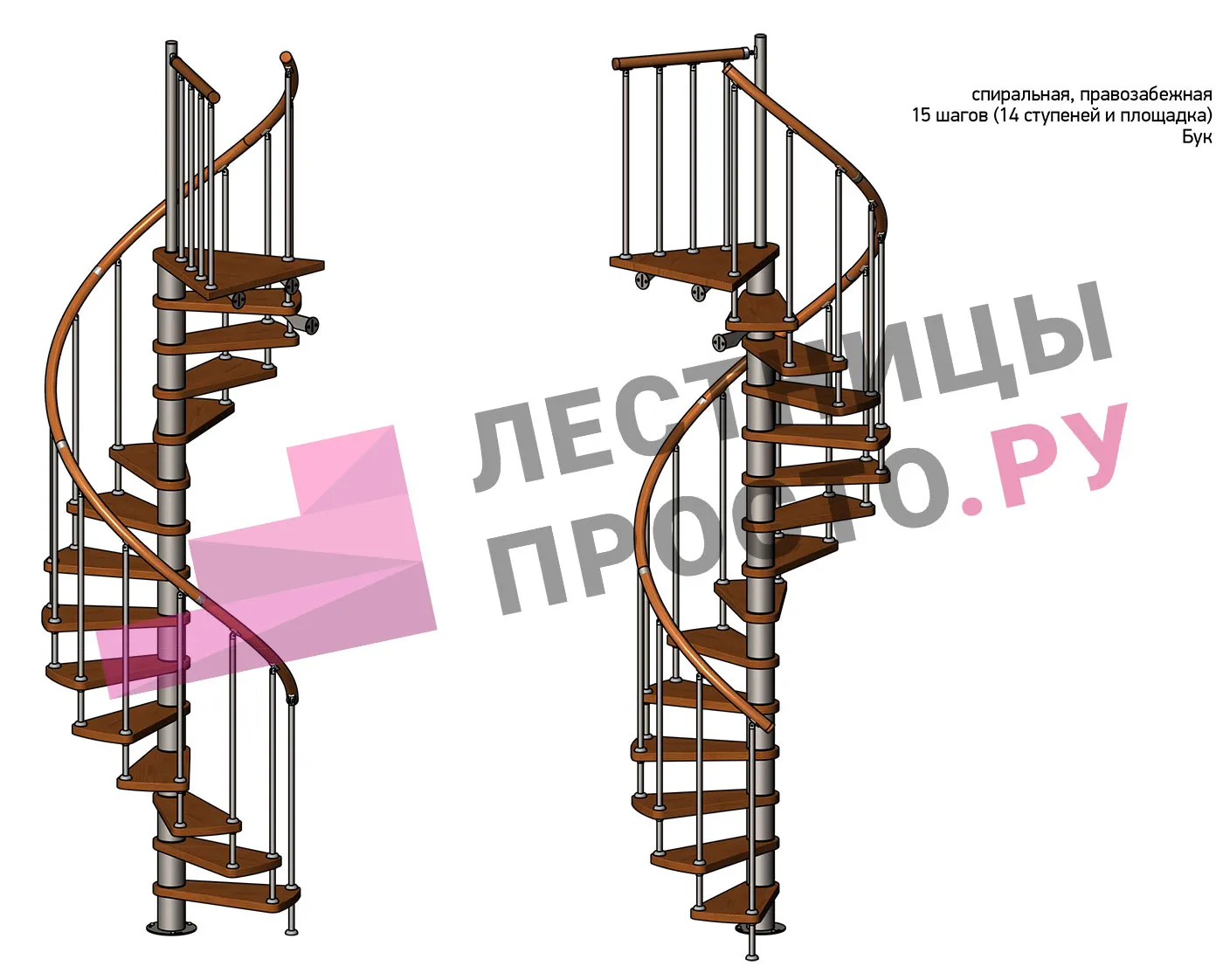Решение о направлении поворота принимается при сборке лестницы - универсальная конструкция позволяет собрать правозабежную и левозабежную лестницы. Высота ступеней регулируется с шагом 3 мм. в пределах 217-247 мм., благодаря чему, лестница прекрасно подгоняется под необходимую высоту.
