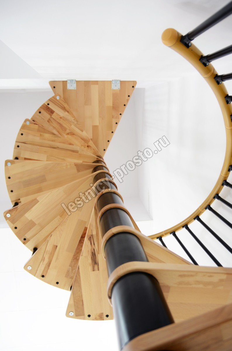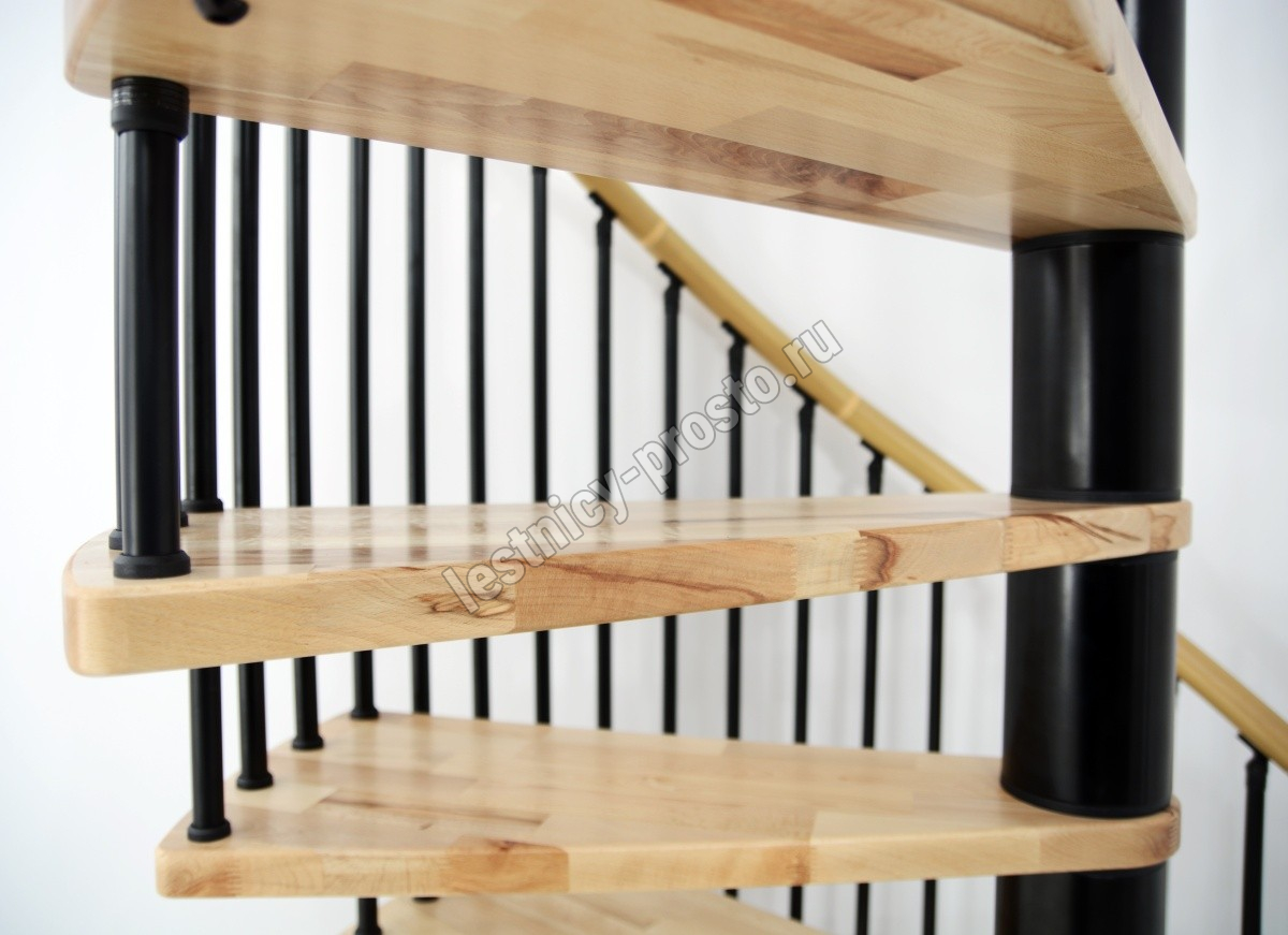 Винтовая лестница SPIRAL WOOD d160 см, чёрная, лакированный дуб