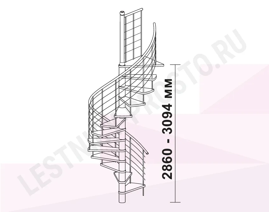 Винтовая лестница Venezia d140 см, серебро, дуб лакированный