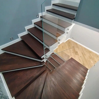 Стеклянная лестница из ясеня LP-2935 с металлическим каркасом