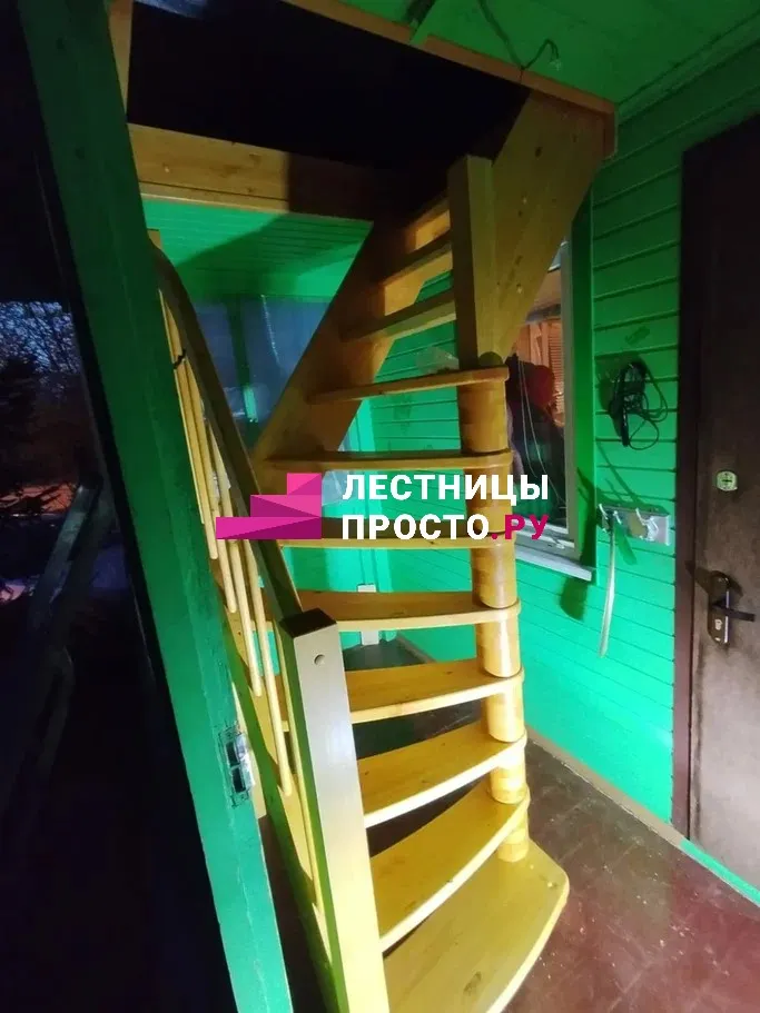 Лестница из сосны с поворотом без покраски