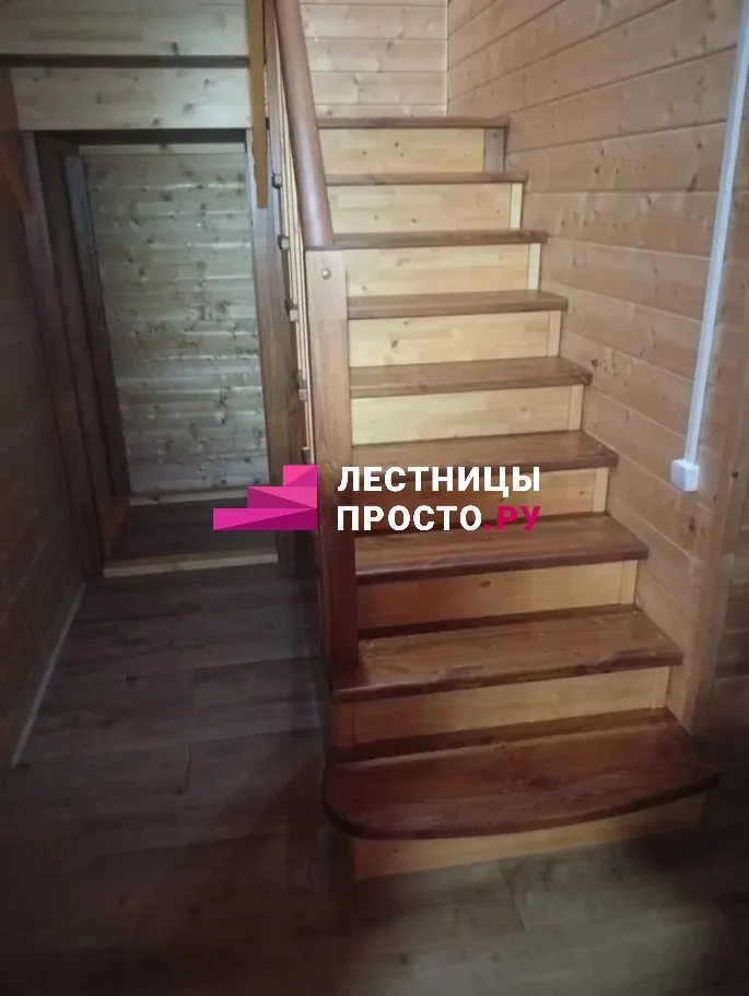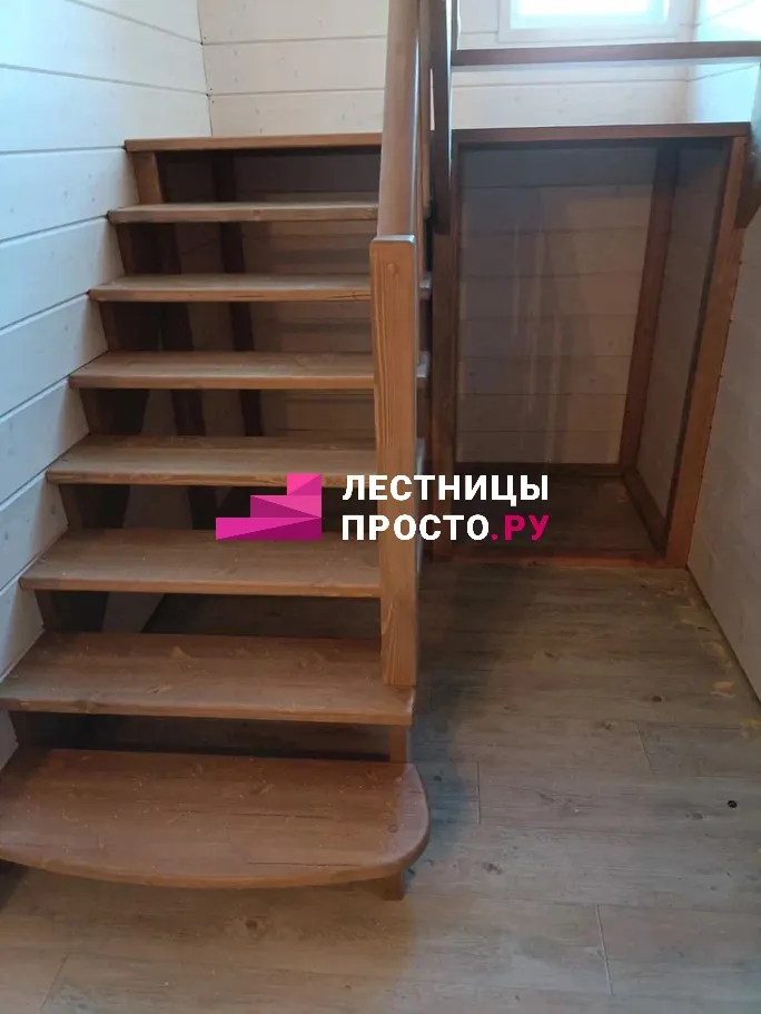 Лестница из сосны с поворотом и подступёнками для частного дома