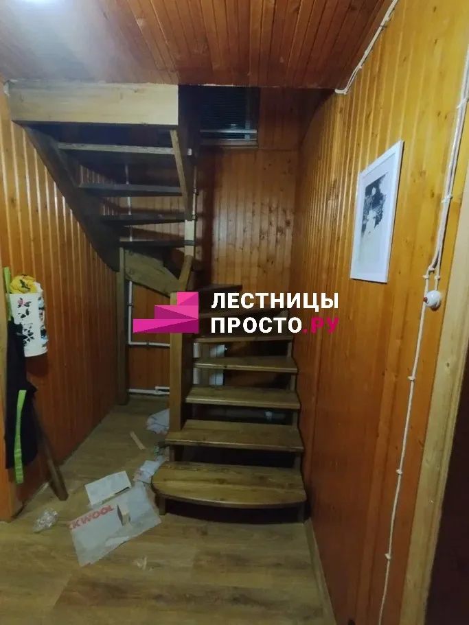 Деревянная лестница с поворотом из сосны для частного дома