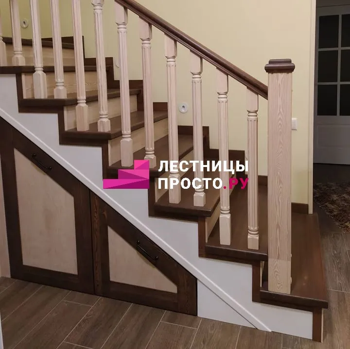 Подступенники, фальш-косоуры и сапожки (пристенной плинтус) выполнены из МДФ.